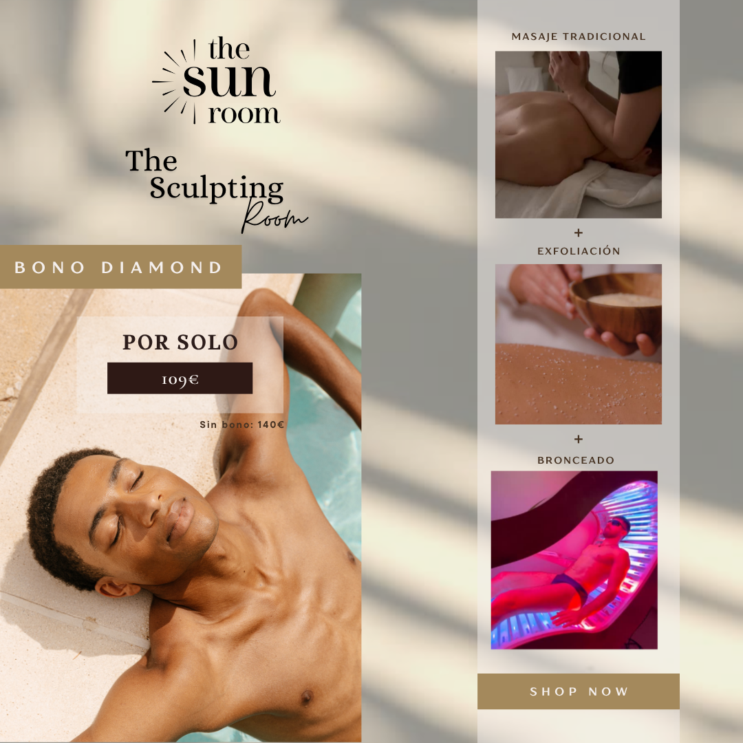 Una vez hayas realizado el pedido, ponte en contacto con nostros para reservar tu cita en The Sun Room. Puedes usar el chat de esta página web, en la esquina inferior derecha, o: